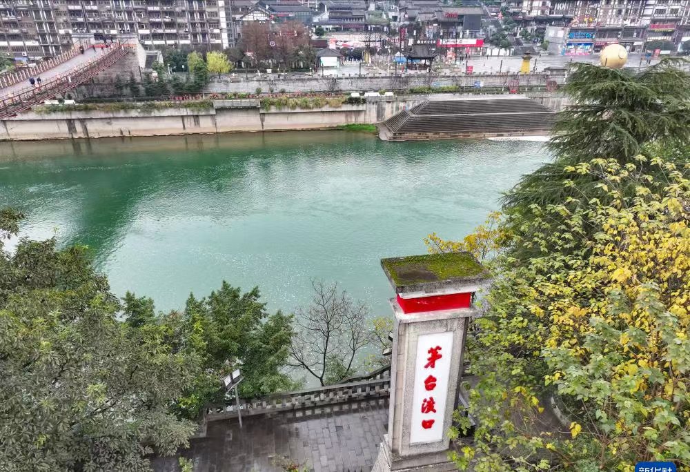 红军长征三渡赤水——茅台渡口,书法家陈恒安题写,赤水河岸一边是茅台酒,一边是郎酒