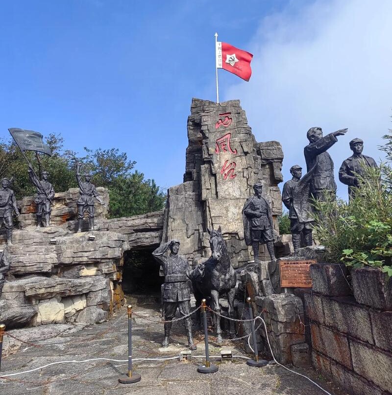 遵义市汇川区板桥镇和桐梓县娄山关街道交界处,娄山关风景区:西风台红军活动雕塑