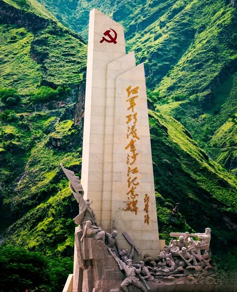 红军巧渡金沙江纪念碑,碑身几个大字由聂荣臻元帅题写,位于金沙江北岸的四川境内