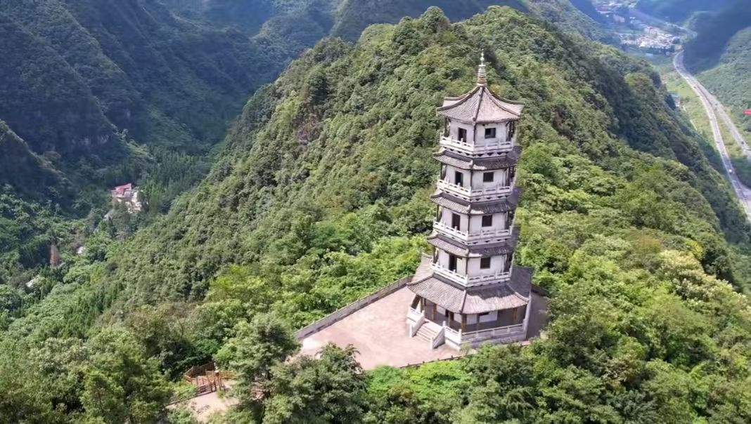 娄山关景区大尖山山顶·雁鸣塔,五层阁楼式塔身,塔名源于毛主席诗词《忆秦娥·娄山关》