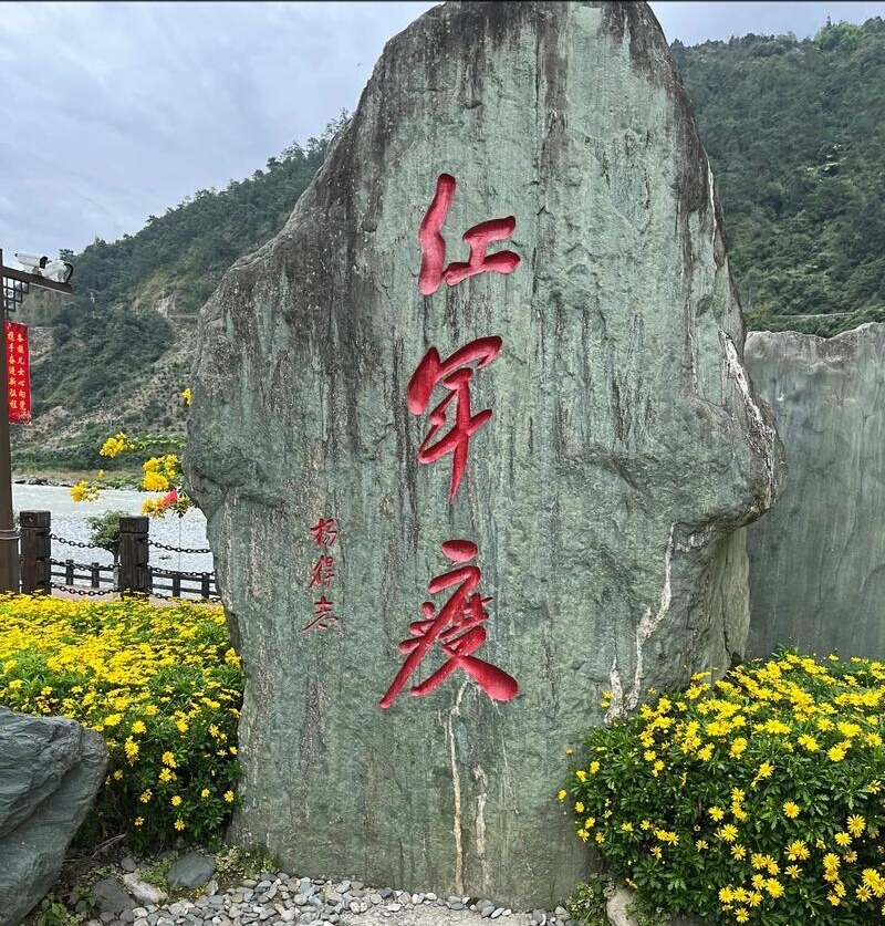 红军在安顺场渡口强渡大渡河纪念石碑,杨得志开国上将题写:红军渡 落款书有杨得志